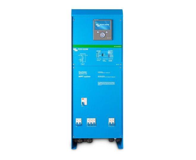 El EasySolar combina un controlador de carga solar MPPT, un inversor/cargador y un distribuidor CA en un solo dispositivo. El producto se instala fácilmente, con un mínimo de cableado.