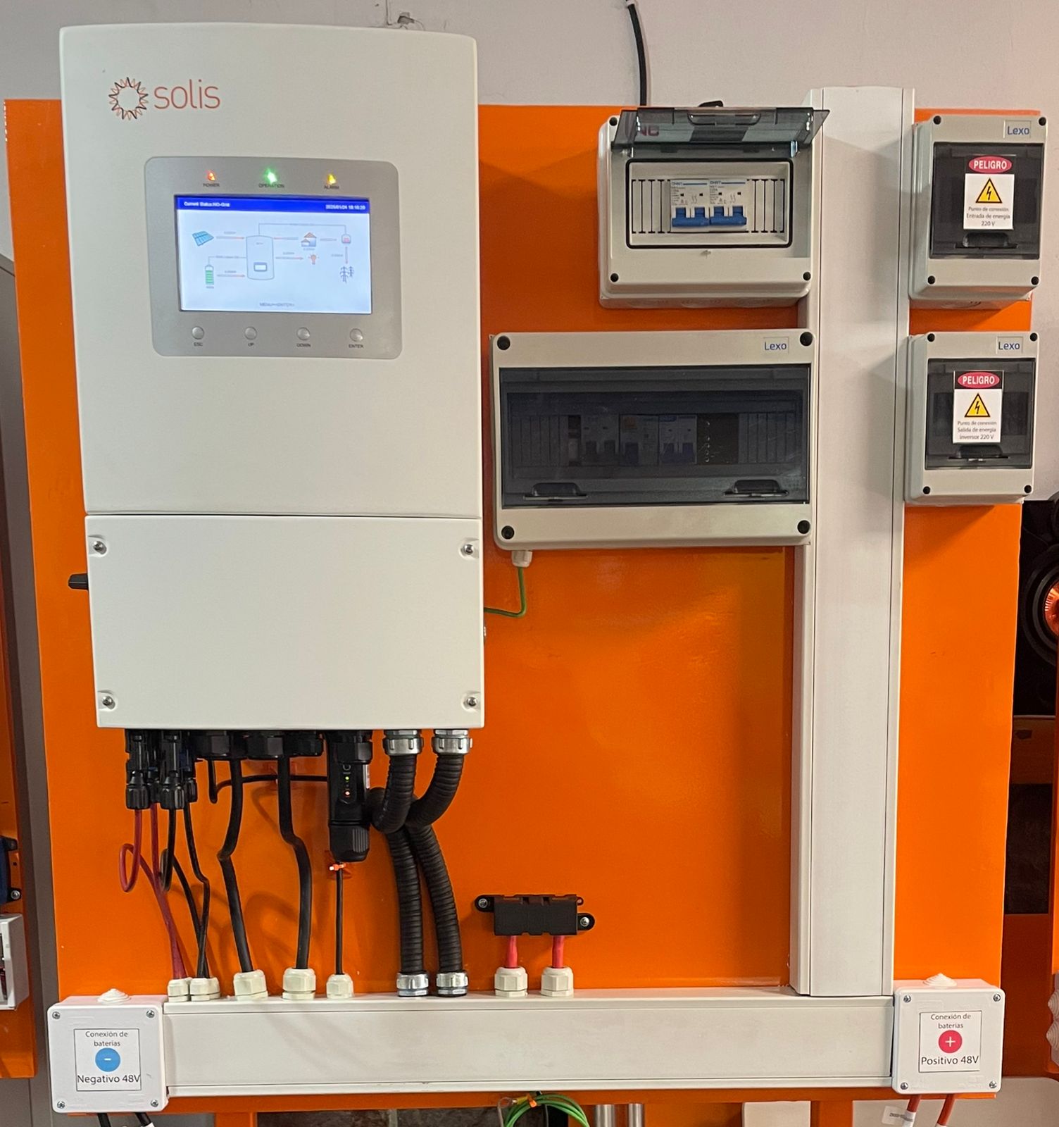 Prearmado: Montaje de inversor sobre placa metálica con sus puntos de conexión y protecciones.